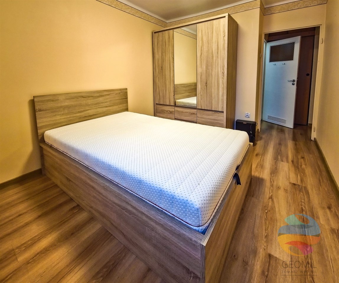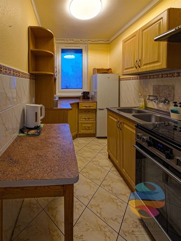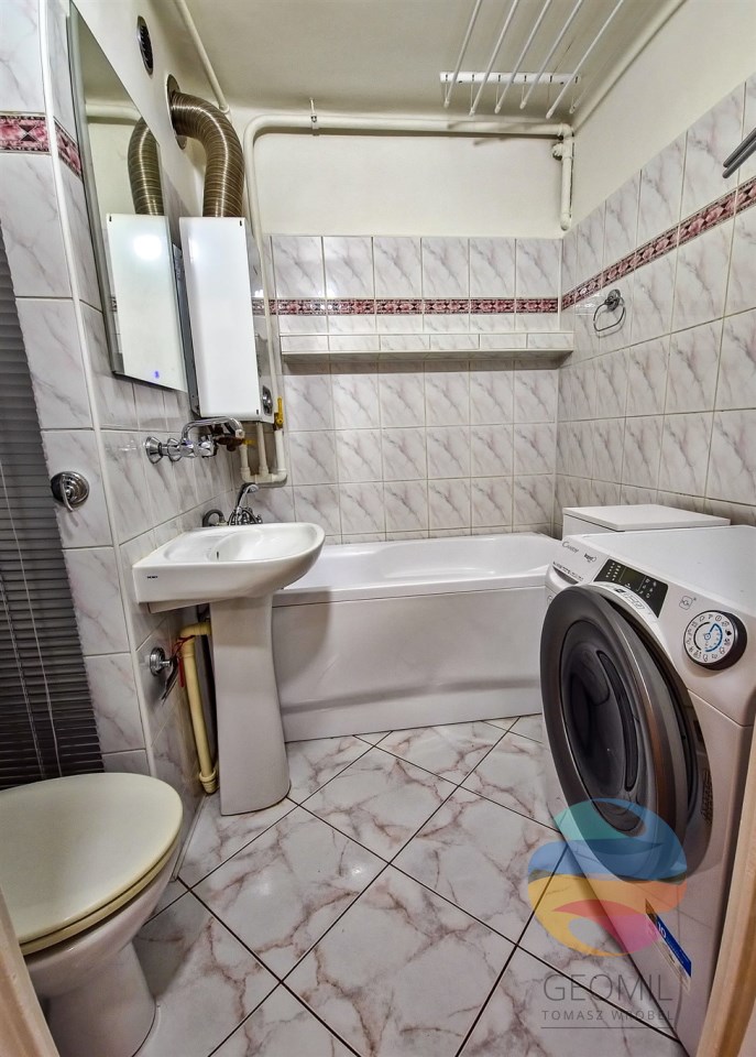 Wnętrze umeblowane i wyposażone w AGD (lodówka, kuchenka gazowa z piekarnikiem, okap, pralka). Ogrzewanie miejskie, c.w.u. z piecyka gazowego. Budynek zadbany, 2 windy, 2. piętro, parking miejski wokół budynku.